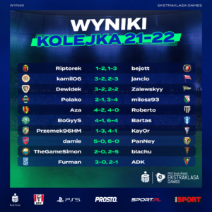 Za nami tydzień pełen niespodziewanych wyników, rotacji w tabeli i wspaniałych goli w rozgrywkach PRO FIFA 23. Po rozegraniu 22 kolejki różnice punktowe w czołówce zmniejszyły się, gdyż coraz bliżej „Zalewskyy’ego” jest zarówno „Damie” jak i „Furman”.